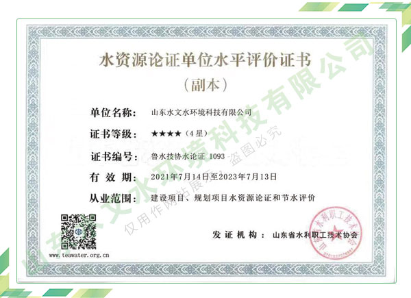 公司擁有水利工程設(shè)計(jì)、水土保持、水文水資源調(diào)查評價(jià)、水資源論證、建設(shè)項(xiàng)目環(huán)境影響評價(jià)、市政公用工程施工總承包、水利水電工程施工總承包、電子與智能化工程專業(yè)承包等資質(zhì),2017年通過質(zhì)量管理體系、環(huán)境管理體系、職業(yè)健康安全管理體系認(rèn)證;2020年被評為國家級高新技術(shù)企業(yè),同年被中國水利企業(yè)協(xié)會推薦為第一批“合同節(jié)水服務(wù)企業(yè)”;2021年被山東省、濟(jì)南市評為 “專精特新”中小企業(yè)。業(yè)務(wù)范圍涉及水利工程設(shè)計(jì);節(jié)水設(shè)計(jì)、改造、水平衡測試;山洪災(zāi)害調(diào)查;城市水資源調(diào)查評價(jià);建設(shè)項(xiàng)目水土保持方案編制、監(jiān)測、驗(yàn)收、水土保持規(guī)劃;水安全保障規(guī)劃、建設(shè)項(xiàng)目水資源論證、規(guī)劃水資源論證;建設(shè)項(xiàng)目環(huán)境影響評價(jià);入河排污口論證;防洪影響評價(jià);市政公用工程施工、水利水電工程施工、電子與智能化工程施工等。